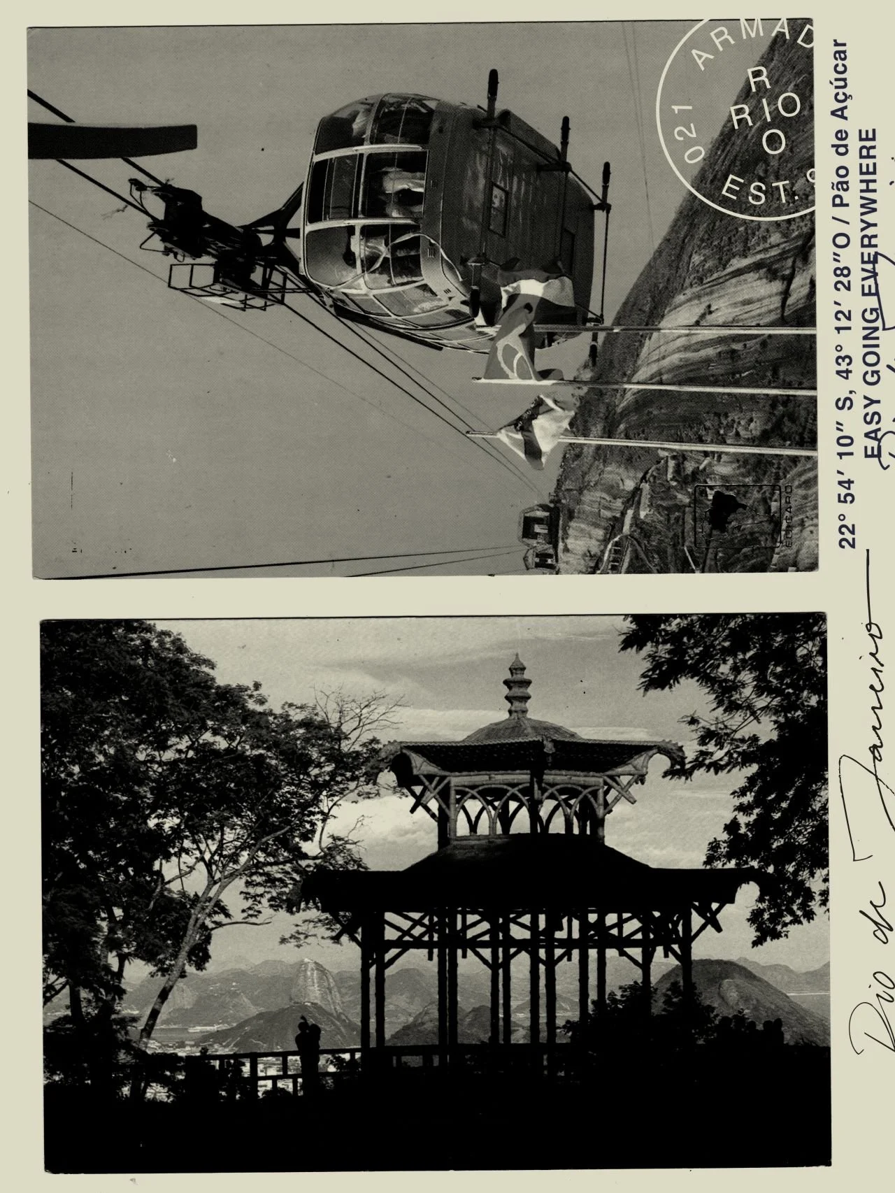 The idea was inspired by the aesthetic of vintage postcards from Rio de Janeiro.