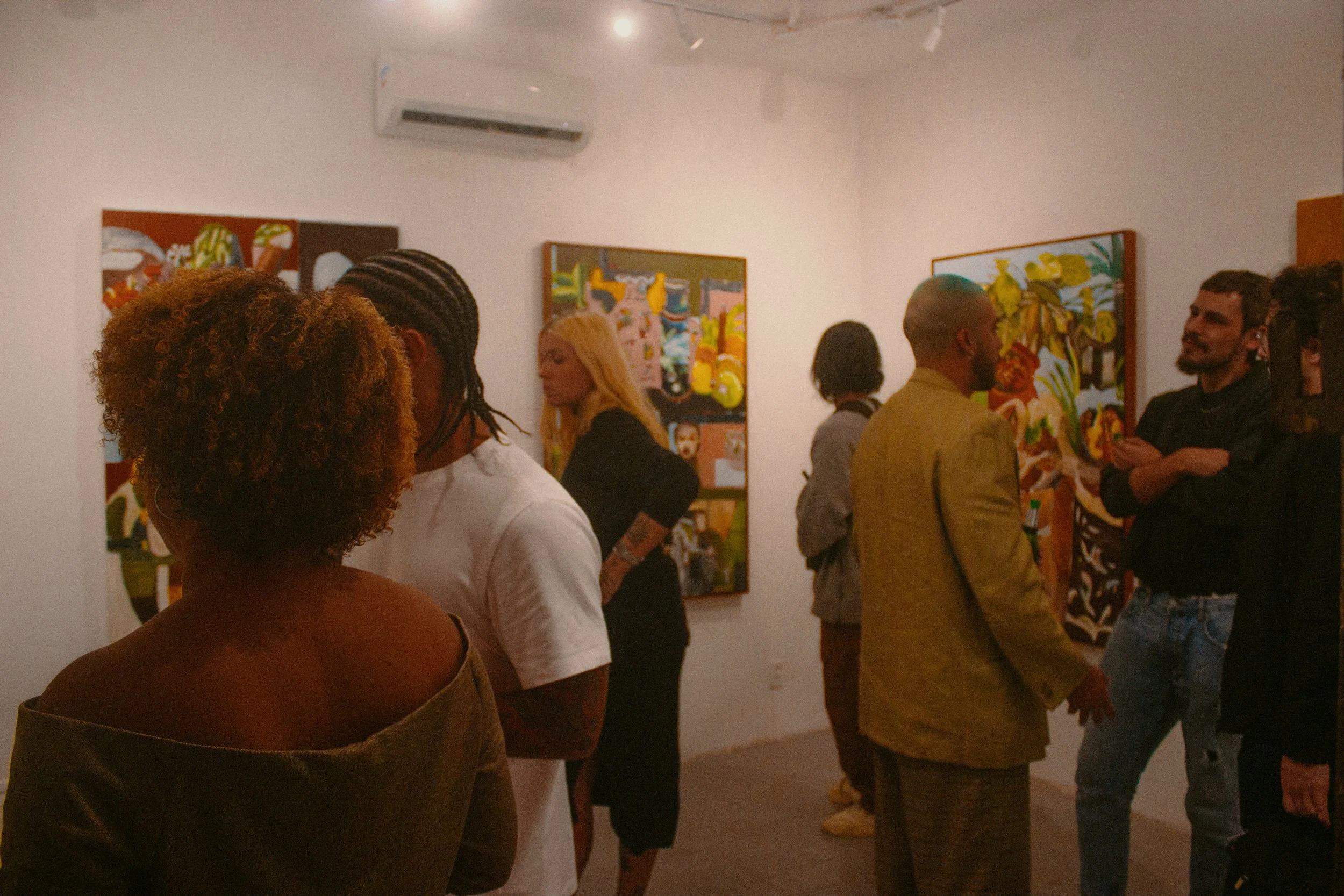 Barreto paints layers that coexist in a temporal disparity, using masks to build the surface of the canvas to remove them at a certain point of the process, breaking the image and revealing a background from a different time, which start to build the same world of overlapping stories coexisting in the same painting. This extractive method of the artist can be understood, after all, as a particularity of his brushstroke: removing to reveal, extracting to compose. Thus, understandable illustrations of ordinary and nostalgic scenes such as a family coffee in the after- noon, a child in the playground, the local flora or the ornament on the grandmother's table, are interrupted by almost violent mechanical gestures of ripping part of the canvas, extracting information and revealing gaps filled by traces of a previous or later scene, one adding to the other, forming a sort of Image that is very signature of the Artist.